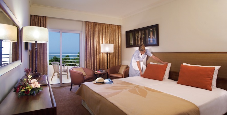 Při zařizování pokojů v hotelu Porto Bay Falésia byl kladen důraz skutečně na každý detail – výsledkem je příjemné, útulné prostředí, kde můžete nerušeně relaxovat po dni nabitém zážitky. Všechny pokoje jsou vybaveny pohodlnými postelemi, křesly, toaletním stolkem, kabelovou televizí, minibarem, kávovarem a rychlovarnou konvicí, trezorem a připojením na internet. Každý pokoj se také může pochlubit prostornou mramorovou koupelnou s vanou a sprchou, vysoušečem vlasů a toaletními potřebami. Pro odpolední siestu jistě využijete soukromou verandu se zahradním nábytkem.
