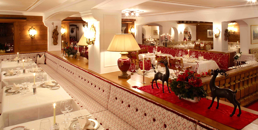 V hotelové restauraci se servíruje domácí rakouská a mezinárodní gurmánská kuchyně. Plná penze zahrnuje velký ranní bufet, 4-chodové polední menu a 5-chodovou večeři. V hotelu je také bar s otevřeným krbem a sluneční terasa, na které se servíruje oběd v pěkném zimním počasí.