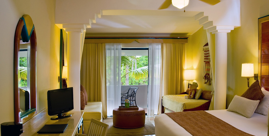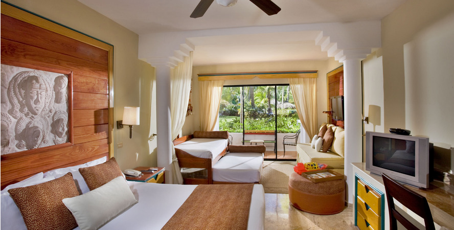 Family Deluxe Junior Suite s výhledem do zahrady nebo na bazén se skvěle hodí pro rodiny dětmi, které potěší tematické dekorace, mini stojánek k umyvadlu či dětské koupelnové vybavení.