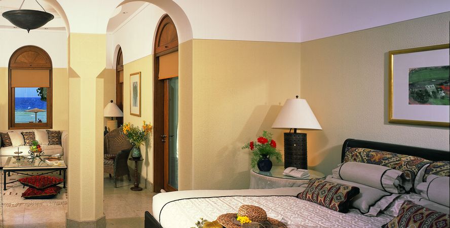 Architektura resortu odráží styl oblasti, ve slunci se lesknou zářivé kopule, oblouky i zdobné sloupy. V bujné zeleni umístěných 63 Deluxe Suites nabídne prostorné ložnice a oddělený obývací pokoj v arabském stylu. Vybrat si můžete postel king size nebo jednotlivé postele, některé z nich mají i pohovku. Samozřejmostí jsou prosklené koupelny s mramorovanými vanami. 21 prostornějších Superior Deluxe Suite se nachází velmi blízko pobřeží, k soukromé pláži to budete mít jen pár kroků.